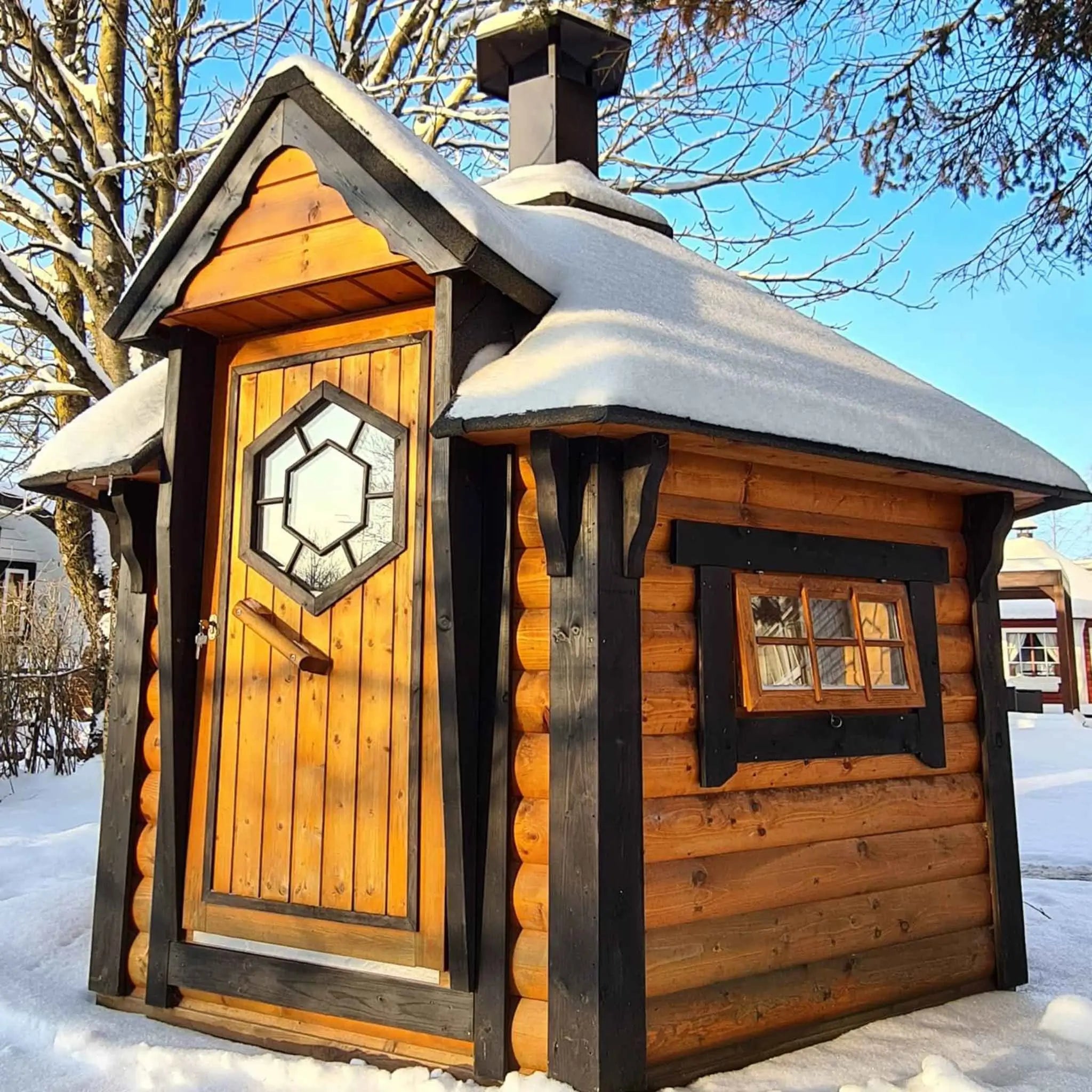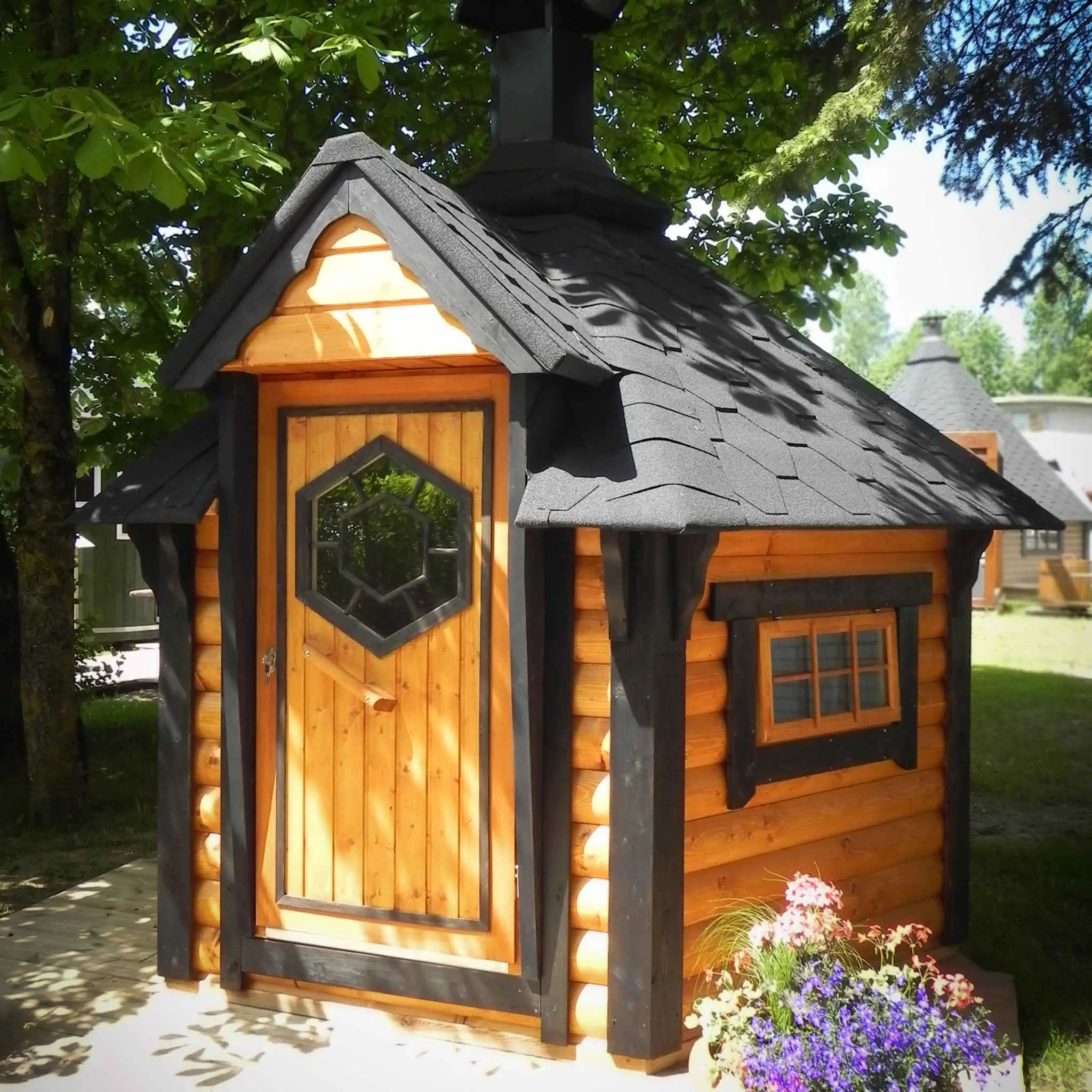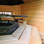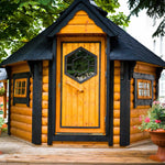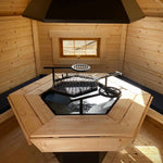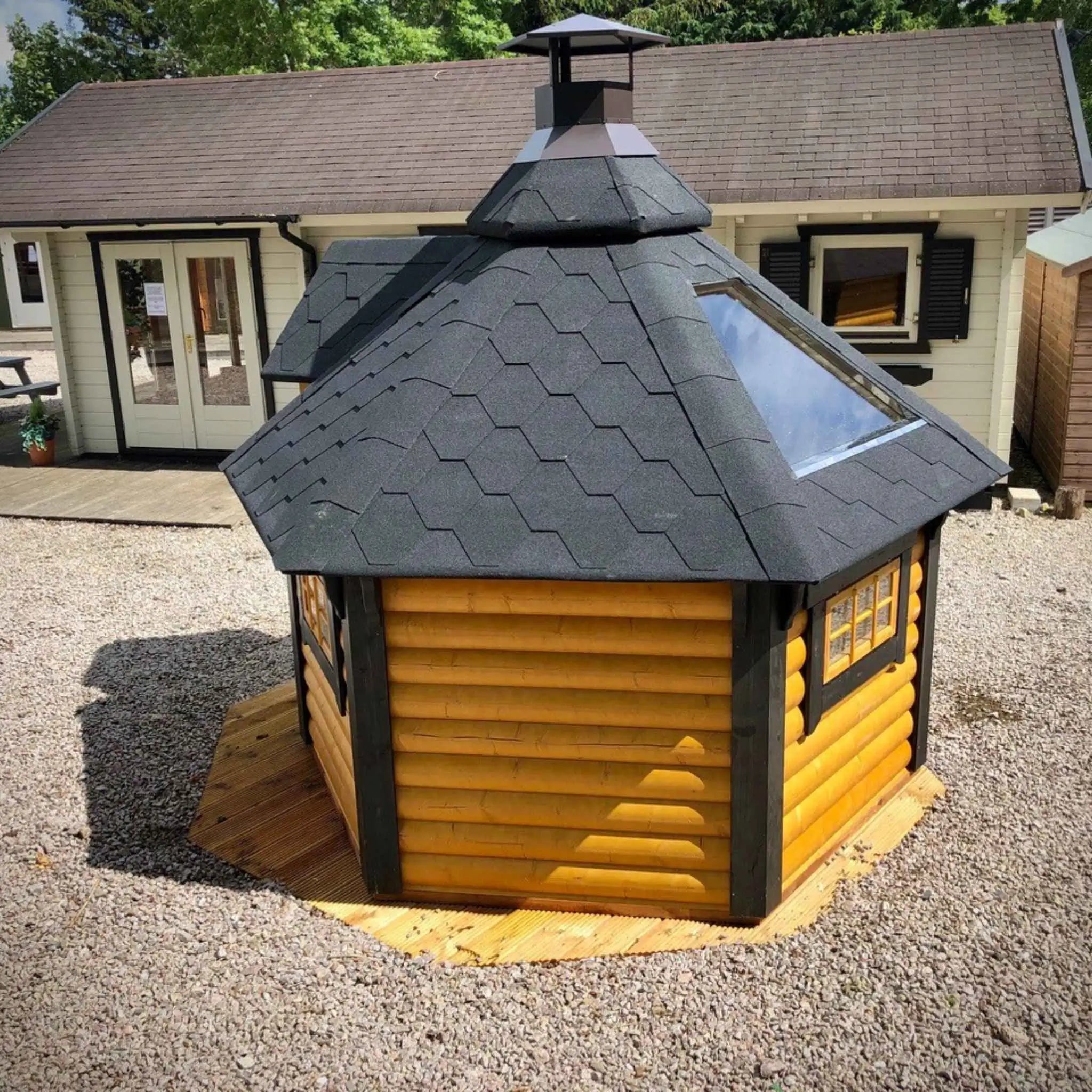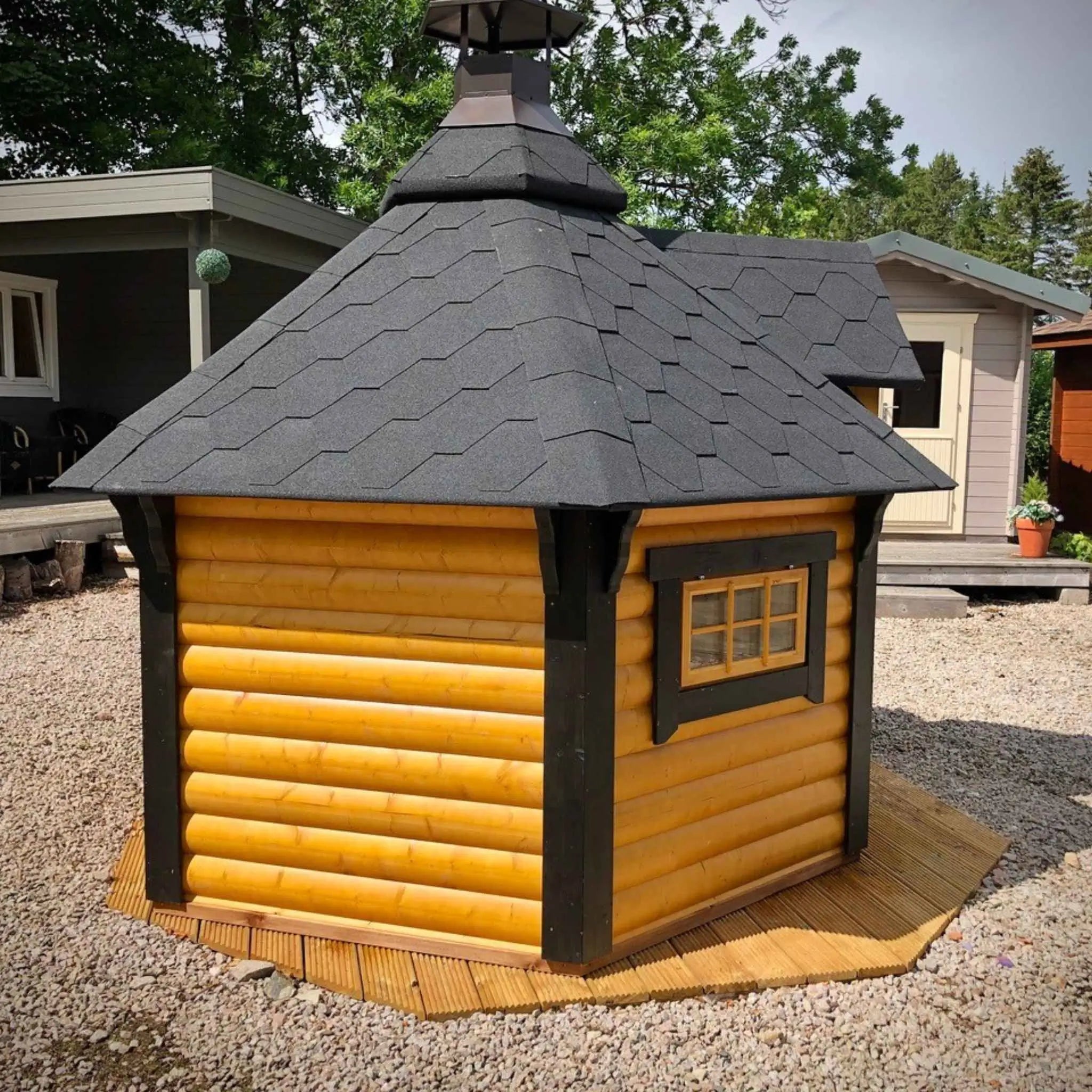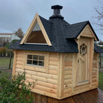 Seating up to six comfortably (or eight if needed), it offers the charm of Nordic cabin design in a compact footprint, ideal for smaller gardens, patios, or as a unique feature for glamping and holiday sites.