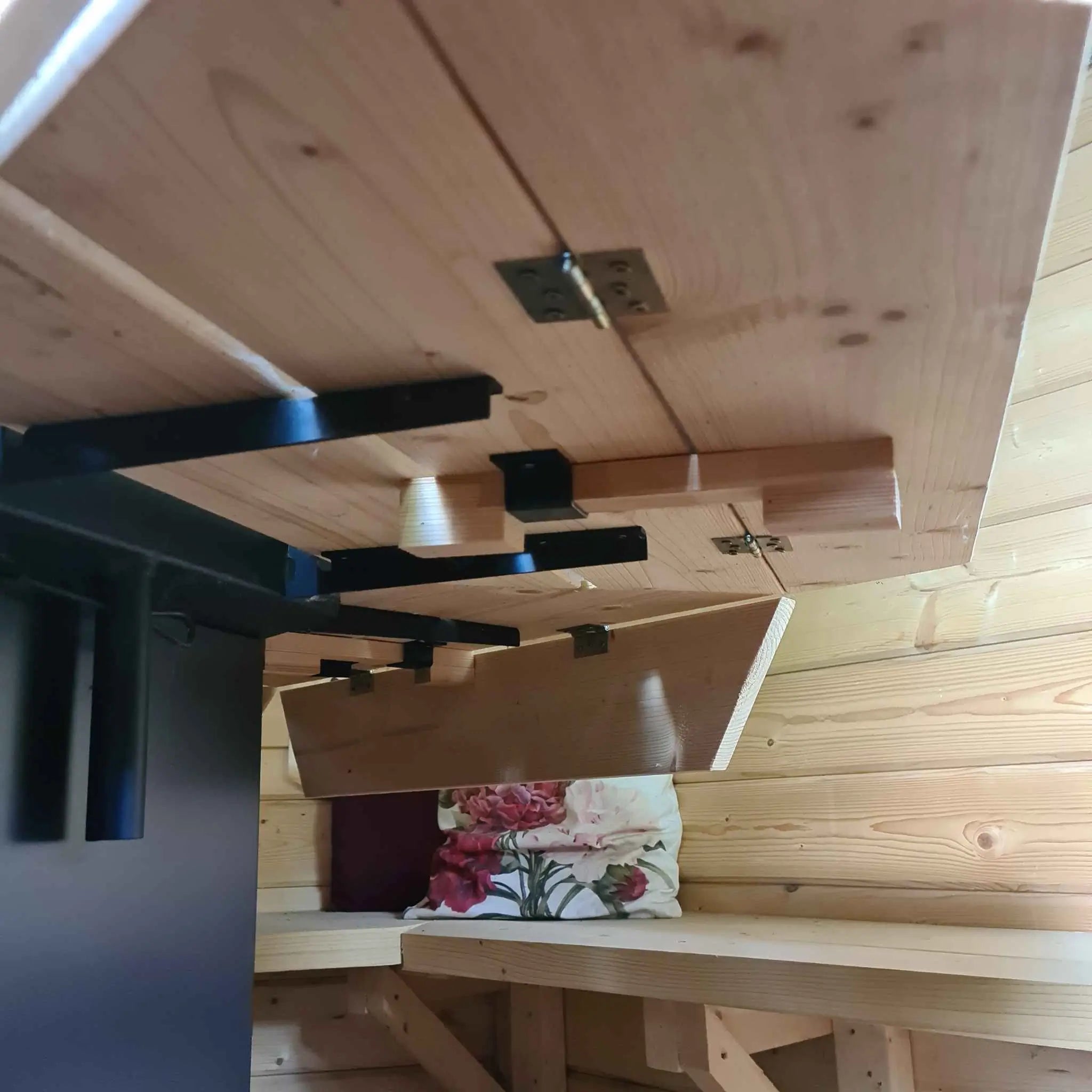 • Flexible Seating: Five spruce benches, two of which fold for space efficiency.
